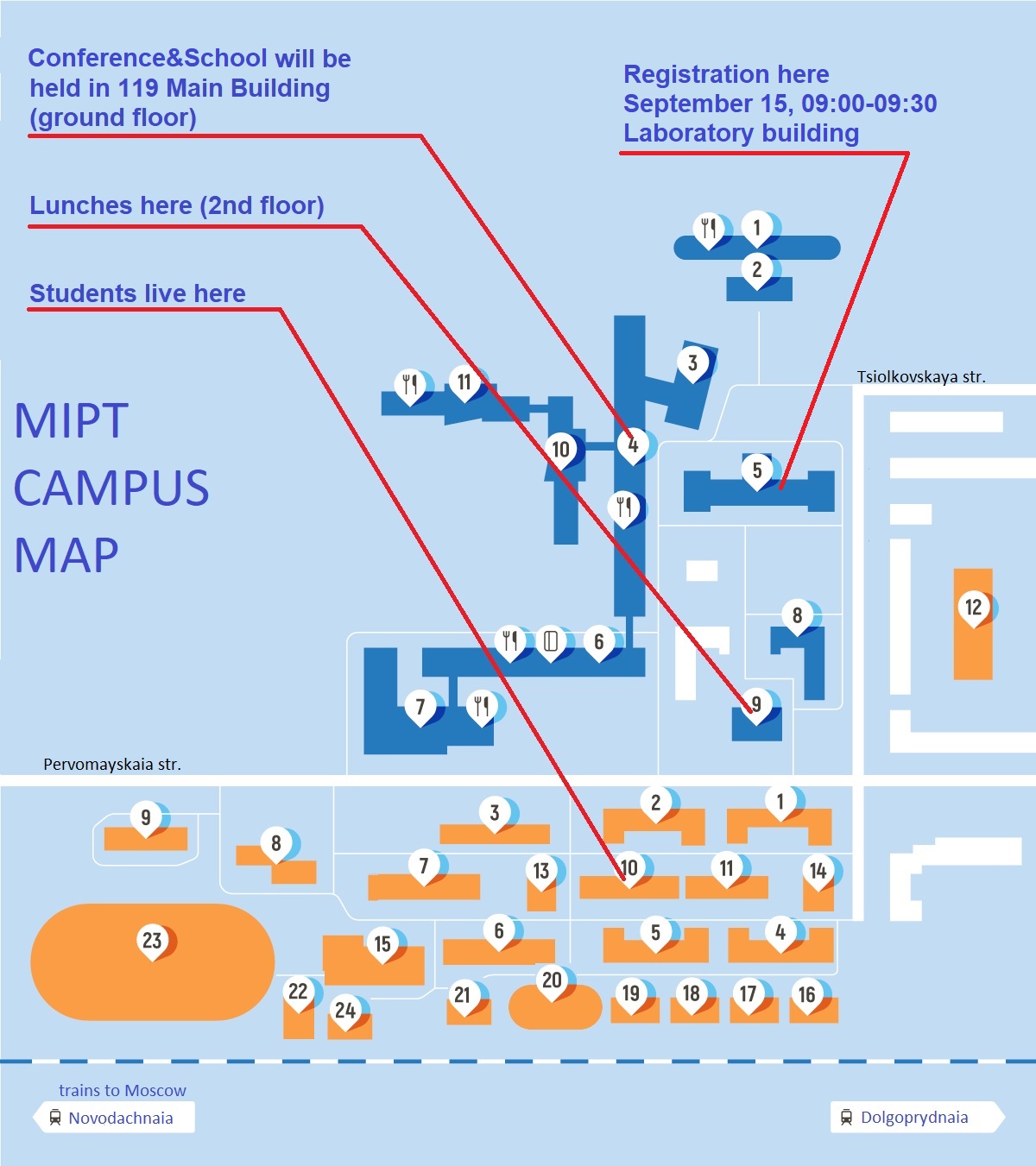 15 сентября с 9:00 до 9:30 регистрация будет проходить на первом этаже Лабораторного корпуса (корпус №5 на карте).